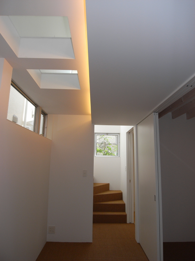 突き当たりに見えるのは、窓に切り取られた隣の植木。